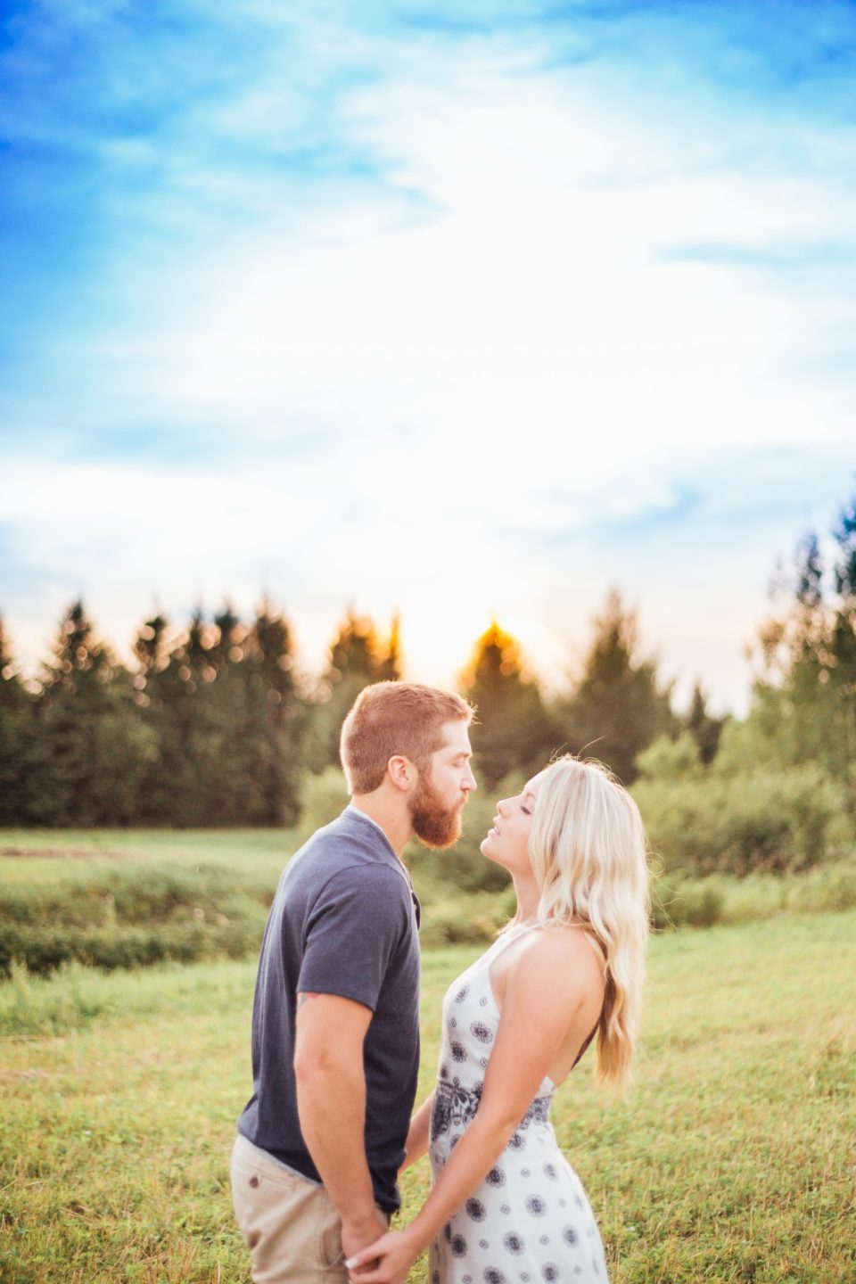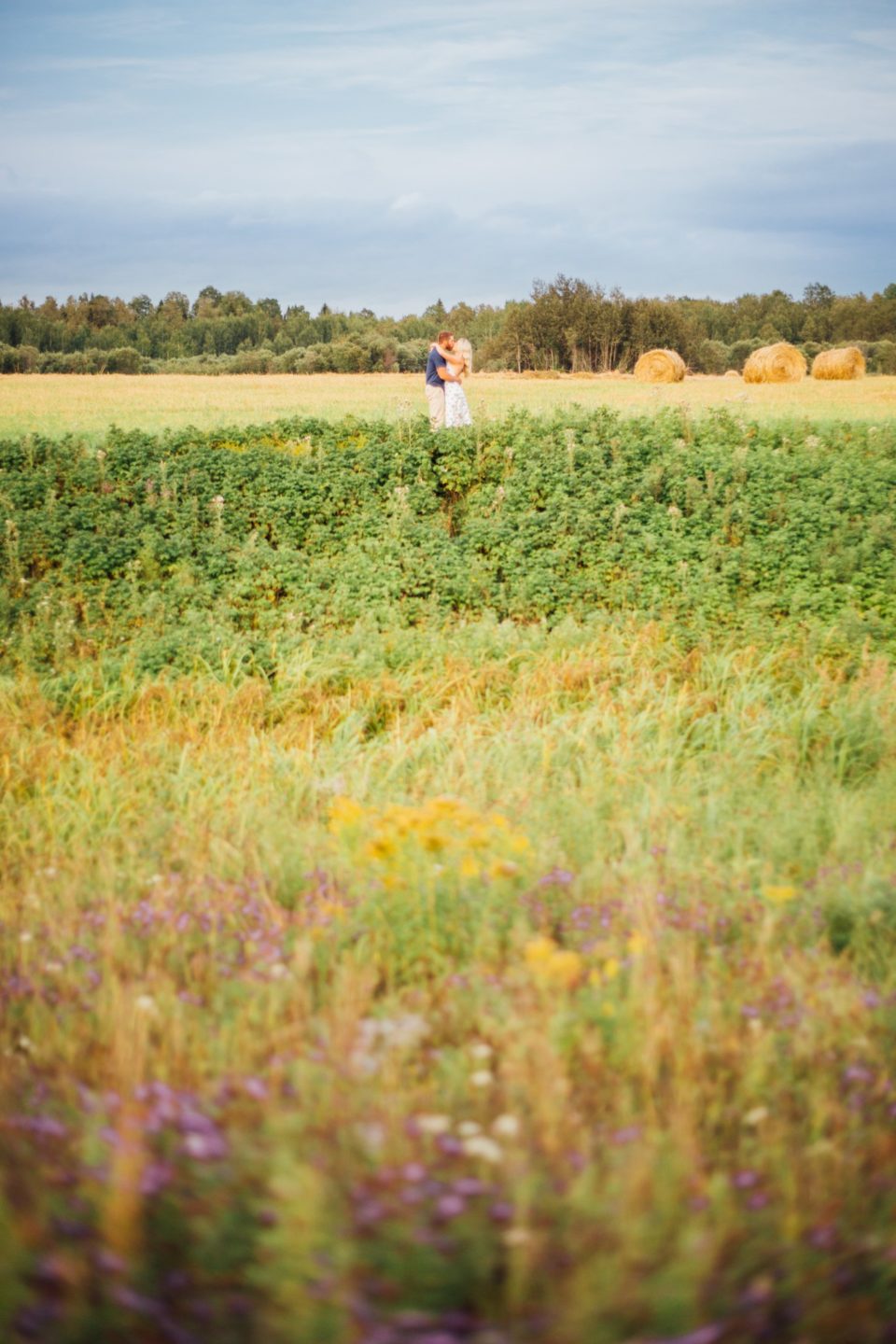 The couple led the way, ducking in-between small meadows and trees. The sun made the long grass look whimsical. Their dogs ran up and down the line, always checking in with their owners for a moment before turning their heads in a new direction.